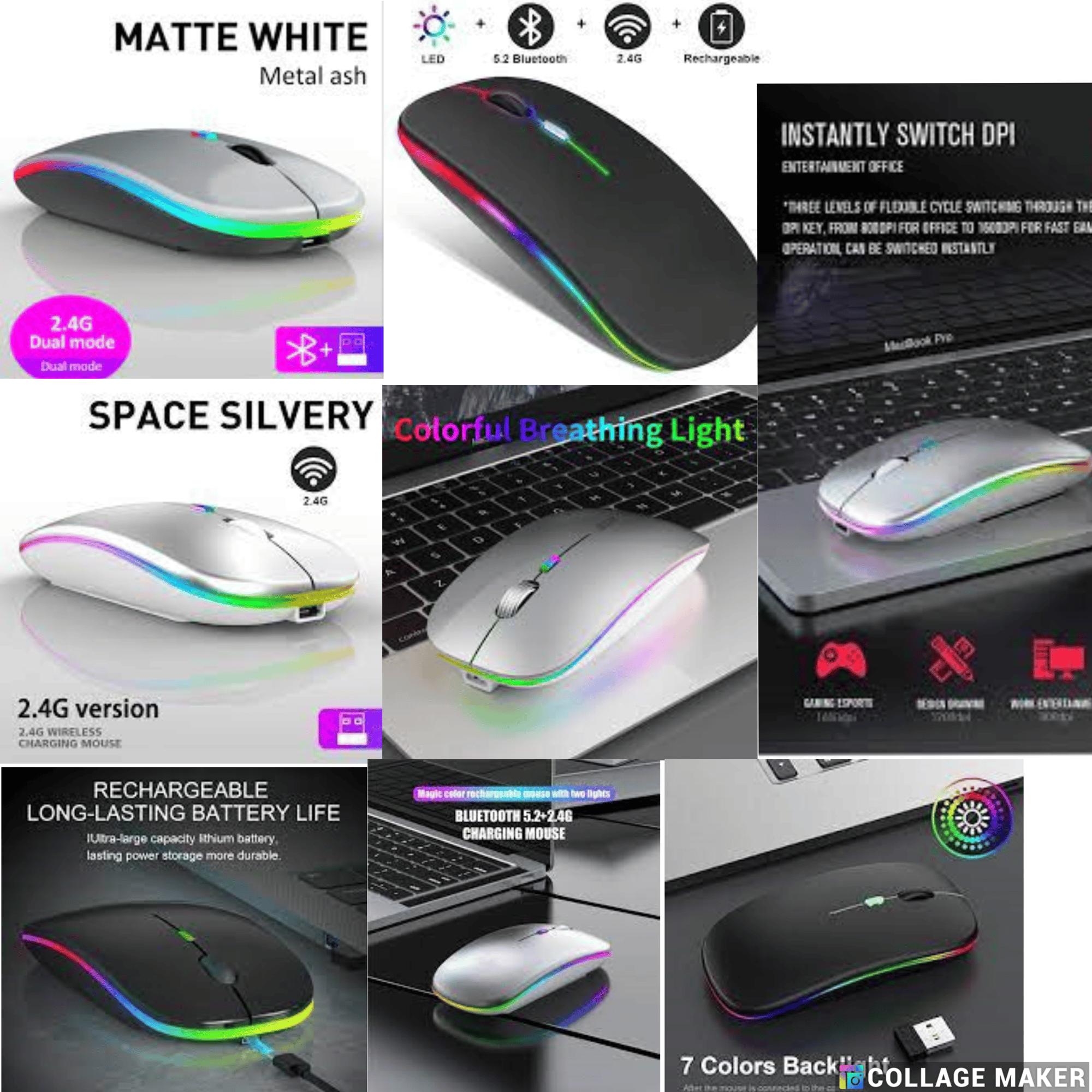 Bluetooth Wireless Mouse Gamer Rechargeable Wireless Computer Mouse RGB LED Backlight Ergonomic Gaming Mouse for Laptop PC